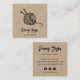 Rustikal braune Kraftsenkarten für Ihr handgefertigtes, handgefertigtes oder handwerkliches Geschäft sind mit zwei Textzeilen auf der Vorderseite in handgeschriebenem Styling und Schriftzeichen versehen, mit einer Abbildung einer Garnkugel mit zwei Stricknadeln. Fügen Sie der Rückseite fünf Zeilen benutzerdefinierten Textes in passenden Schriftart hinzu. Beinhaltet drei Social Media Icons und ein Feld für Ihren Benutzernamen.