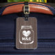Rustikales Land schicke Holz Kornplatte Mason Glas Reise Gepäck Tag. Vintages Herzdesign für Taschen und Koffer aus frischem Obst. Niedliche braune und weiße Hochzeitslogos mit Initialen von Braut und Bräutigam. Das Design ist gestört. Rustikaler Stil mit Monogramm für Hochzeitsreisende. Romantische Grunge Stil Typografie. Personalisieren Sie für mr und mrs / nur verheirateten Ehemann und Ehefrau. Anpassbare Hintergrundfarbe ist schwarz.