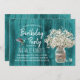Rustikales Gipskraut Jar & Hummingbird Aquamarin Barn Wood Geburtstagsparty Einladungen.