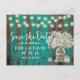 Rustikale Aquamarine Barnholz Gipskraut Mason Jar & Glass Candle String Lichter Save the Date Hochzeitsankündigungen.