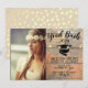 Haben Sie ein Abitur Party? Genießen Sie diese rustikale Einladung mit individualisierbarem Foto. Hintergrund aus Holz, Saitenleuchten, mit allen individuellen Eventdetails. Tan Hintergrund mit rustikalen, konfetti Flecken.