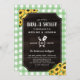 Rustikales Green Gingham Sunflowers Baby-Q Dusche Einladung