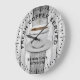 Novelty Kitchen Clock With hat das Theme. Personalize with name. A coffee cup illustration with the fresh coffee served typography on wood background adds a modern and rustic look to your kitchen decor.
