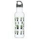 Personalisierte Wasserflasche mit rustikalem Western Geschmack. Entworfen mit einem Haufen niedlicher grüner Kakteen in einem sich wiederholenden Muster. Insbesondere grün gefärbte Kakteen in allen möglichen Formen und Größen, die jeweils in ihrem dunkelblauen Blume-Topf sitzen. Kleine dekorative Dreiecke dazwischen. Whimsical lustige Illustration.