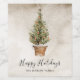 Rustikale Happy Holidays Weinetiketten. Individuelles Weinetikett mit einem Aquarellweihbaum. Cava Party Design