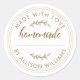 Rustikale, moderne und einfache hausgemachte Backwaren oder Konservenaufkleber mit hausgemachtem Text, mit Liebe und Ihrem Namen in goldfarbener handgeschriebener Kalligraphie und Typografie auf weißem Hintergrund. Fügen Sie einfach Ihren Namen zum Label hinzu. Schreiben Sie die Produktnamen auf den Aufklebern, wenn Ihre Produkte fertig sind. Exklusiv für Sie von Happy Dolphin Studio entworfen!