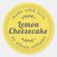 Rustikaler und moderner hausgemachter Aufkleber mit dem Text aus Liebe, Zitronenkäsekuchen und Ihrem Namen in schwarz moderner Schrift und Typografie auf einem leuchtenden gelben Hintergrund. Fügen Sie dem Label einfach Ihren Namen und den Produktnamen hinzu. Exklusiv für Sie entworfen von Happy Dolphin Studio. Wenn Sie Hilfe oder passende Produkte benötigen, kontaktieren Sie uns bitte unter happydolphinstudio@outlook.com.