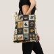 Dieses Herbstpatchwork-Quilt-inspiriert Totbeutel zeigt warme saisonale Motive auf rustikalen Plätzen. Kürbis, Vögel, Herz und blumengeschmückte Zweige erscheinen neben karierten und Schachbrettblöcken, mit Sternen, schneeflockenartigen Formen und Körben, die eine charmante Abwechslung schaffen. Es wird in Erdtönen in Orange, Braun, Creme, Rot und Schwarz gehalten und fängt die gemütliche Bauernästhetik der Erntezeit ein. Ideal für Erntedank, rustikales Landdekor, fallendes Kunsthandwerk und für alle, die primitive Volkskunst-Lieben haben.