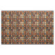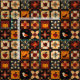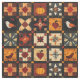 Dieser Stoff weist ein rustikales Patchwork-Quiltmuster auf, das in einem gemütlichen Gitter aus Stoffblöcken angeordnet ist. Jeder Block präsentiert einzigartige Eigenmotive wie Kürbis, Vögel, Äpfel und Herzen, sowie komplizierte geometrische Muster wie Sterne, Quadrate und mit Blumen oder Schneeflocken inspirierte Designs. Der in warmen Erdtönen in Orange, Rot, Braun und Creme umrahmt von dunklem Hintergrund, fängt das Wesen der Herbst- und Erntezeit ein. Dieses volkstümliche Design im Bauernstil ist ideal für Erntedank-Dekoration, rustikales Kunsthandwerk, stofflich inspiriert Heimwerkerprojekte und landschaftliches Herbst-Zuhause-Design.