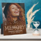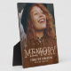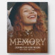 Rustikale Gedenktafel mit einem wertvollen Foto Ihres Lieben, einem dunklen Holzherz-Design, dem Sprichwort "in liebevoller Erinnerung", ihrem Namen und ihren Daten.