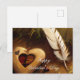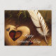 Rustikales Herz und Federvalentin Postkarte
