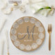 Rustikale Hochzeitburlap-Monogramm-Teller mit Namen als Spitzenpapier. Hochauflösender Schleifhintergrund mit Spitzentablenkkreisen am Rand der Platte. In der Mitte ist das Monogramm Initial in einem eleganten dunkelgrauen Skript-Schriftart.Die Namen der Braut und Bräutigam und das Datum der Hochzeit in einem hübschen, weißen Skript-Schriftart.Anpassen und personalisieren Sie den Text durch einfaches Ersetzen des Vorlagentextes mit Ihrem eigenen. Die Teller sind in den Größen 7 Zoll und 9 Zoll erhältlich. Wählen Sie die gewünschte Größe aus.