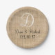 Rustikales Hochzeitburlap-Name Datum Monogramm Pappteller