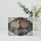 Individuelle rustikale Hochzeitskarte mit zwei Höhlenherzen auf rustikalem Holz und Spitzen-Hintergrund. Die UAWG ist mit einer Sitzecke ausgestattet. Matching-Elemente verfügbar.