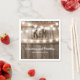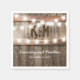 Rustikale Hochzeitsnapkins mit Stallenholz-Fass-Hintergrund, Tinkle-Saitenleuchten, Monogramm, Hochzeitsdatum und Ihren Namen.