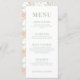 Stärken Sie Ihr Hochzeitserlebnis mit diesen böhmischen, eleganten Hochzeitsmenükarten, die mit pastellfarbenen, oranfarbenen Blüten in der Blume von Aquarellorange geschmückt sind.
