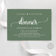 Markieren Sie den Anfang Ihres Lebens mit Eleganz mit unserer zeitgenössischen Hochzeitsfeier Einladungskarte "Happily Ever After Dinner". Diese Einladung eignet sich perfekt für Paare, die ihren fröhlichen Anlass ausdehnen und mit einem Hauch von Verspieltheit die Bühne für eine unvergessliche Veranstaltung geben. Das Hotel ist mit einem zeitlosen, waldgrünen Thema geschmückt und verleiht Ihren Festlichkeiten eine Touch raffinierten Charmes. Diese von TeeshaDerrick entworfene Einladung verspricht, Ihre Liebe schön zu erfassen.