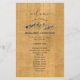 Schönes MOUNTAIN WEDDING-Programm-Blatt-Design mit einem gezeichneten Bergmotiv und einem großen "Empfang" in einem eleganten Drehbuch sowie das Hochzeitsprogramm Details auf einem rustikalen holzstrukturierten Hintergrund für Sie zu personalisieren.