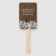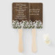Rustikaler Hochzeitsfan in dunklem Holzlook mit Blume aus dem Atem des weißen Babys, ganz unten. Personalisieren Sie den weißen Text, um zu lesen, was Sie gewollt haben.