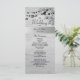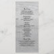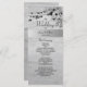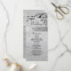 Elegantes, modernes, rustikales, schwarz-weißes Hochzeitsprogramm mit Vintag silberner Blütenspitze und Lichtern aus Streichholz.