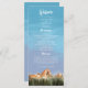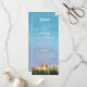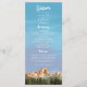 Rustikales Hochzeitsprogramm zur Illustration roter Berge mit Kiefernwald. Alle Informationen über die Hochzeitsfeier und den Namen der Hochzeitsfeier auf diesem Programm aufgeführt. Ideal für eine Herbst- oder Winterhochzeit.