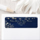 Elegantes, modernes, rustikales Holz marineblau Hochzeitslabel mit Imitaten goldblühenden Spitzen und Lichtern.