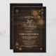 Rustikales Holzkorn 70. Geburtstag Abendessen Party Einladung mit einem einzigartigen geometrischen Goldrahmen.