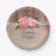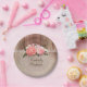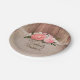Stall Hochzeitspapiere Teller mit rosa Blume, rustikales Holz, Vintage Einbeulung