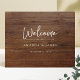 Dieses stilvolle Hochzeitsdinner Probe Willkommensplakat mit schlichtem, minimalistischem Design. Wir haben diesem minimalistischen Design einen besonderen Charakter verliehen, indem wir einen lebendigen, entspannten "Welcome"-Schriftart mit den unten hervorgehobenen Vornamen zwischen der Erholung der Begrüßungsbotschaft und Ihrem Datum kombinierten. Wir haben auf allen Seiten des Textes viel Platz verlassen, um einen unverblümten Look zu erhalten, der die Aufmerksamkeit auf die Nachricht zeichne. Der Text ist auf einer Basis, die das Aussehen von rustikalem Holz hat. Bitte beachten Sie, dass es sich nicht um Holz handelt, sondern nur um ein Bild. Nutzen Sie Ihre Inspiration und die intuitiven Design-Tools, um dieses vielseitige rustikale Holz Hochzeit Probe Dinner begrüßen Poster einzigartig. Und bitte schauen Sie sich unsere Hochzeitsempfangskollektion für andere schlichte Designs an, inklusive eines ähnlichen Designs im vertikalen Format!