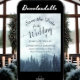 Diese wunderschönen Save the Date sind ein guter Weg, um Freunden und Familie lassen, die über Ihre kommende Hochzeit wissen. Das Design besticht durch eine rustikale Bergszene mit einem blauen Pinienwald, der von Nebel oder Nebel umspült wird. Der kalligraphische Text mit der Schnappschreiheit verleiht dem Bild Eleganz. Ideal für eine Hochzeit in Urlaubsort im Freien, im Wald oder in den Bergen.