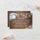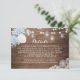 Rustic Wood White Blue Hydrangea Hochzeitsdetails Informationskarte. Rustikale Holz Mason Jar String Lights Details Beilage Karte