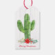 Rustikale Wood Floral Kaktus Weihnachtsgeschenk Tags mit einem rustikalen, südwestlichen Saguaro Kaktus mit einem festlichen Urlaub botanischen blühtest von poinsettias und heilig auf einem rustikalen weißen Holzboden.