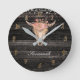 Rustikales Holz Blumenkuh Schädelhorn Floral Boho Runde Wanduhr