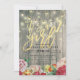 Baby Shower Einladungskarten Vorlagen - Imitate Gold Foil Script mit Blumen und String Lights auf rustikalem Holz Hintergrund. Alle Textstile, Farben, Größen können an Ihre Bedürfnisse angepasst werden.