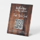 Rustikales Holz botanischer QR Code Hochzeitssitze Sockelschild