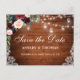 Rustikales Holz Burgund Blue Floral Save the Date Ankündigungspostkarte
