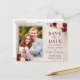 Rustikales Holz Burgund Blumengebirge Foto Save the Date Postkarte