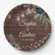 Rustikales Holz Burgund Blumenleuchten Hochzeit Pappteller