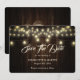 Rustikale Hochzeit speichern Sie die Dattelkarte mit Streichlichtern und Burlherzen mit Initialen auf einem rustikalen Holzhintergrund. Einfach personalisieren Sie diese romantische rustikale Hochzeit speichern Sie das Datum online. Passende Gegenstände zur Ergänzung dieses rustikalen Holzes Save the Date.