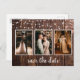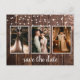 Rustikales Holz Drei-Foto-Leuchten Save the Date Postkarte