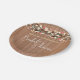 Dieses rustikale Brautparty Papier Platte Design ist Set vor einem Holzlatten Hintergrund mit einem oberen Rand von bunten Blätter. Personalisieren Sie die Vorlagenfelder mit Ihren Daten, entfernen Sie den Text oder klicken Sie auf Anpassen, um den gewünschten Schriftstil, die gewünschte Schriftgröße und Farbe auszuwählen.
