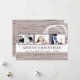 Rustikales Holz Frohe Weihnachten 3 Foto Collage Ferienkarte. Holzstruktur für den Hintergrund. Die Karte verfügt über 3 gerahmte Fotos - Legen Sie 3 Ihrer besten Fotos in die Vorlage ein. Personalisieren Sie die Karte mit Ihrem Text und Gruß und machen Sie Ihre persönliche Urlaubskarte für Ihre Familie und Freunde.