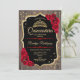 Rustikales Gold schwarz rot Quinceanera Feier Einladung. Enthält Skript-Schriftart, rote Rosen, Tiara und Glitzer Gold. Klassisches Design mit Foto auf der Rückseite. Ideal für eine elegante Prinzessin-Feier. Personalisieren Sie Ihre persönlichen Daten. Gedruckte Zazzle Einladungen oder Sofortdownload digitalen druckbaren Vorlage.