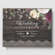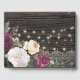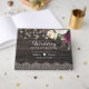 Rustikales Holz Hochzeitsdesign mit Spitzenteilen und Lichterkette. Schöne Blumendetails sind im ersten Plan und machen diese Design elegant und elegant. Design ist leicht zu personalisieren, wenn Sie Schriftart ändern möchten, klicken Sie bitte auf, um weitere Anpassungen. Dieses Design ist ideal für Hochzeiten im Freien und für Hochzeiten im Scheunen. Entworfen, um mit unserer Hochzeitskollektion "Rustic Floral Wood Wedding" zu koordinieren.