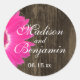 Rustikales Holz Hot Pink Daisy Gastgeschenk Hochze Runder Aufkleber