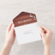 Eine rustikale Holzhütte, die in einer Hochzeitseinladung zusammengefasst ist. Diese Einladung aus braunem Holz ist mit weißen Blätter geschmückt. Es beinhaltet die Einladung sowie eine abreißende RSVP-Karte. Fügen Sie einfach Ihre Informationen hinzu, fügen Sie diese zu Ihrem Warenkorb, und genießen Sie Ihre schöne Hochzeit. Rustikales Holz in einem einladenden Design | ©Melissa Patton - Designer/Illustrator