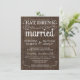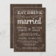 Essen, trinken und Verheiratet sein - rustikale, rustikale einladende Feste im Vintagen Stil - Wirble, lockige Schriftrollen und altmodische Typografie auf braunem Barnholzhintergrund. Fügen Sie Ihre Namen und Hochzeitsinformationen in dieser leicht zu verwendenden Vorlage hinzu. Elegantes, aber lustiges und skurriles Skriptschreiben im Chalkboard-Stil kann für Ihr formales oder halbformelles Retro-Hochzeitstil modifiziert werden. Lässiger moderner Stil ist ideal für moderne Hochzeiten mit einer lustigen Touch romantischen Charmes für Braut und Bräutigam. Bitte kontaktieren Sie uns für Hilfe bei der Anpassung, wenn Sie zusätzlichen Platz für Ihre Hochzeitsdetails benötigen. Andere Größen und Kalkboard-Stile verfügbar.