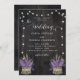 Rustikales Holz Lavendel Weizen String Lights Hoch Einladung