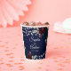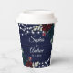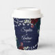 Rustikales Holz Marsala & Navy Blauer Blumen Pappbecher