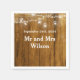 Diese rustikale Wood Mason Jar Lights Wedding Cocktail Serviette ist eine Vintage, schlichte Aussicht auf die Saitenleuchten einer Holzhütte mit Maurerkrügen. Dieses Thema verwendet moderne Typografie.